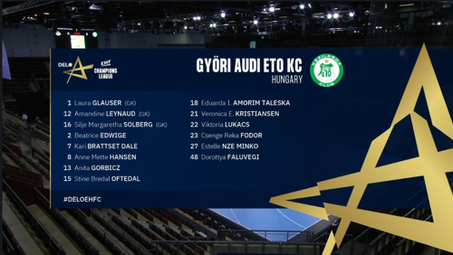 Györ's season top scorer so far, Veronica Kristiansen, is the first to find the net today just inside three minutes to give her team the lead. Kristiansen scored 65 goals in the group phase, just one more than Estelle Nze Minko.